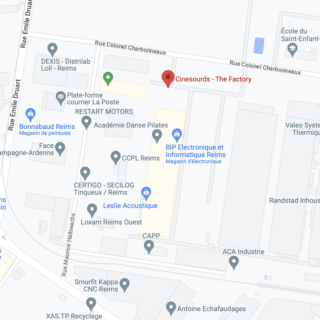 Adresse de The Factory / Address of The Factory: 13 rue Colonnel Charbonneaux 51100, Reims, France